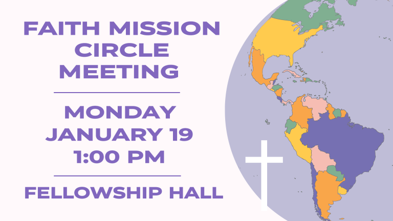 Ladies are invited to join the Faith Mission Circle for their monthly meeting to pray for our supported missionaries, read over their letters and discuss ways we can help them.