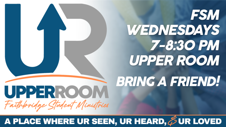 Faith Student Ministries (FSM) for 7th-12th graders meets every Wednesday night at 7:00 pm for a time of snacks, games, small groups and learning more about the Bible.