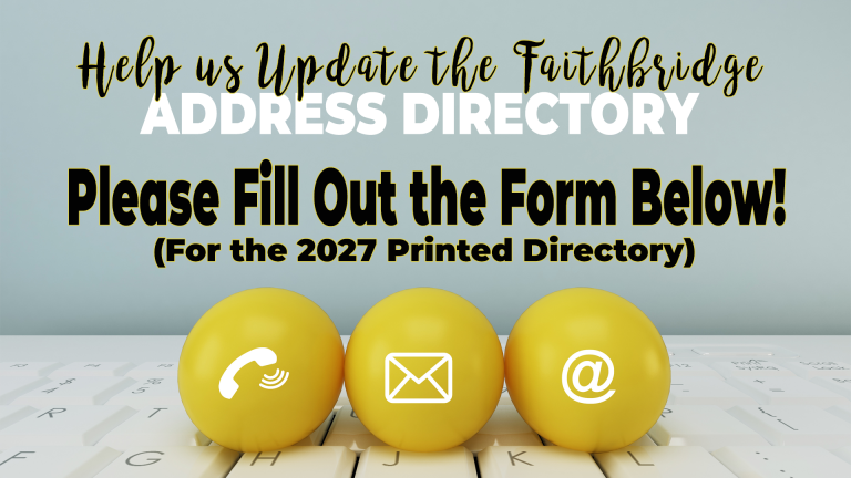 If you would like to be included in the 2027 printing of our Address Directory or if you have additions/changes to your current listing (new baby? new address? new phone?) fill out the form below or the insert in the bulletin. We welcome all regular, occasional and seasonal attenders to be a part of this helpful publication!